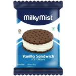 MilkyMist Vanilla Sandwich Ice Cream (Rectangle) features rich, smooth vanilla ice cream embraced by two chocolate biscuit wafers. Each 80 ml rectangular sandwich delivers balanced sweetness and satisfying crunch in every bite. Conveniently wrapped for freshness, it’s perfect for hot days, quick desserts, or nostalgic snacking. With quality milk ingredients and classic flavor, it promises consistent taste and texture in every pack.