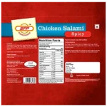 Spicy chicken salami slices made from premium minced chicken with green chilli and bell pepper flavor—conveniently ready to heat, ideal for sandwiches, pizzas, or charcuterie boards. No synthetic preservatives, gluten, or artificial colors added.